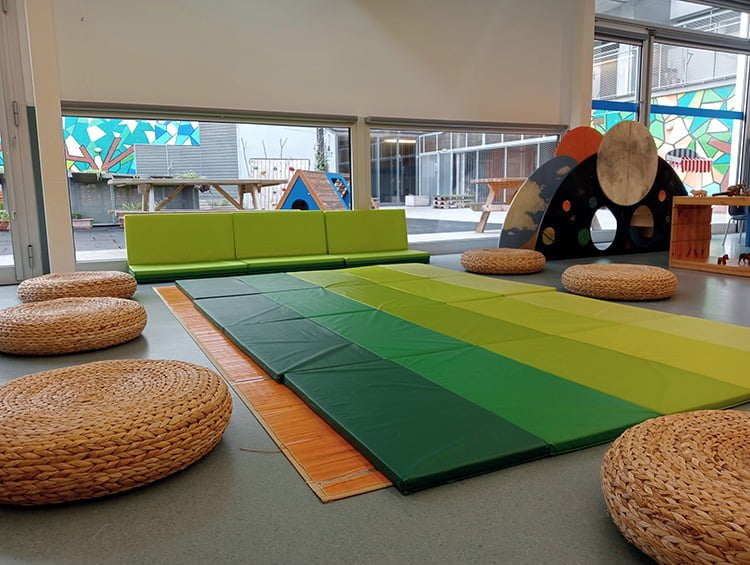 L’equipament té 88 metres quadrats de superfície útil d’ús exclusiu per al servei de petita infància i 126 metres quadrats d’espais d’ús compartit amb el casal infantil, constituïts per un espai de recepció i acollida, un espai polivalent i una cuina. L’equipament infantil també compta amb despatx, magatzem i espai de canviador i lavabos.