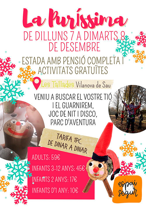 Llegir mésDetailsLa casa de colònies Les Tallades (Vilanova de Sau) ofereix vacances amb activitats dirigides a famílies durant les festes nadalenques!! (inclou la nit de cap...