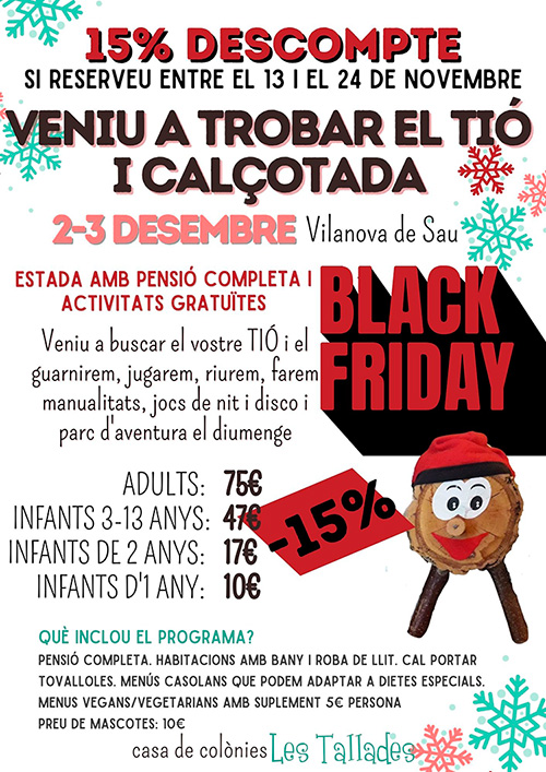 Llegir mésDetailsEl cap de setmana 2-3 de desembre veniu a passar un cap de setmana de cacera de tions!Trobeu el vostre tió* al bosc màgic, decoreu-lo...
