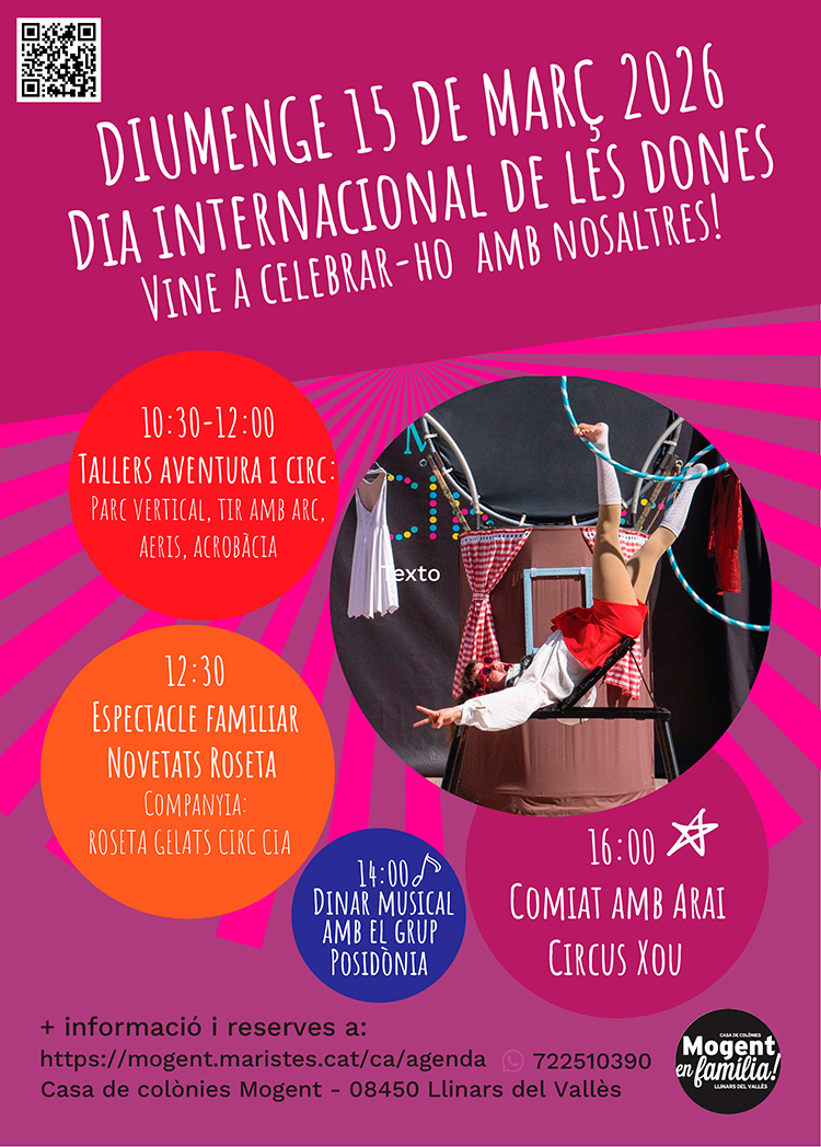 El proper diumenge 15 de març, la Casa de Colònies Mogent, a Llinars del Vallès, es vesteix de festa per celebrar el Dia Internacional de les Dones amb una jornada pensada per gaudir en família. La proposta combina aventura, circ i música en directe en un entorn natural ideal per passar-hi tot el dia.