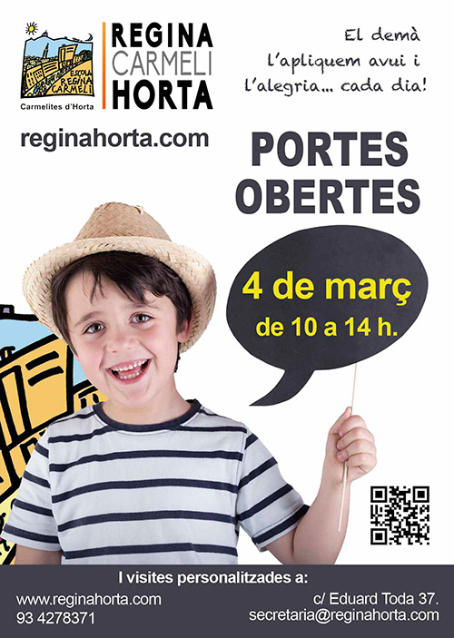 Llegir mésDetailsL'Escola Regina Carmeli Horta convida a totes les famílies que els vulguin conèixer a la Jornada de Portes Obertes que tindrà lloc el proper 4...