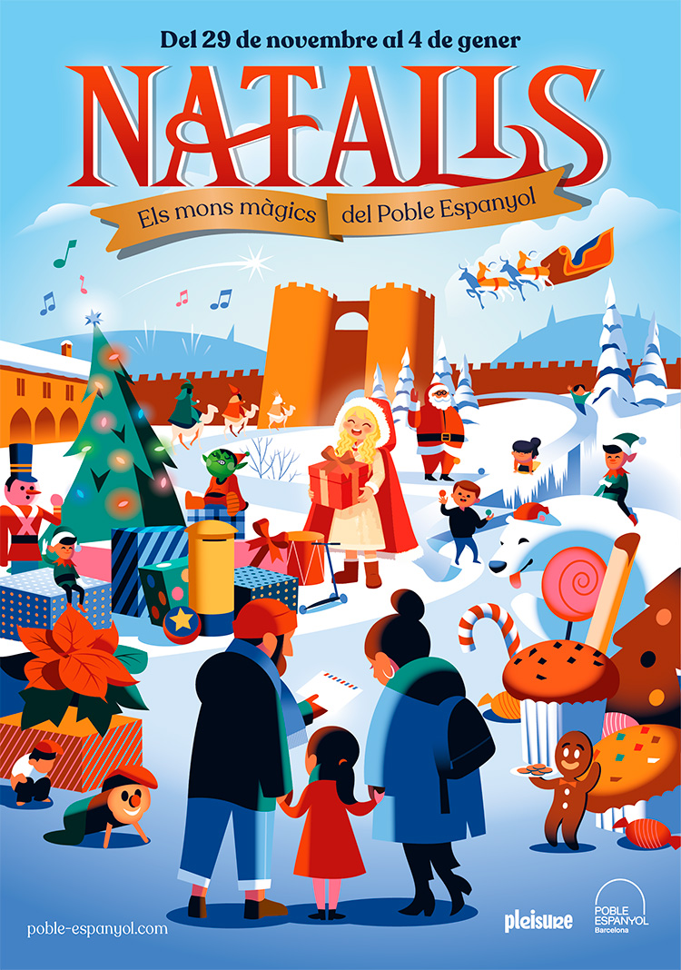 A NATALIS, cada racó del Poble Espanyol es transforma en un espai temàtic amb la seva pròpia personalitat, ambient i personatges. Les famílies podran recórrer-los lliurement, participar en activitats i submergir-se en un veritable conte nadalenc: