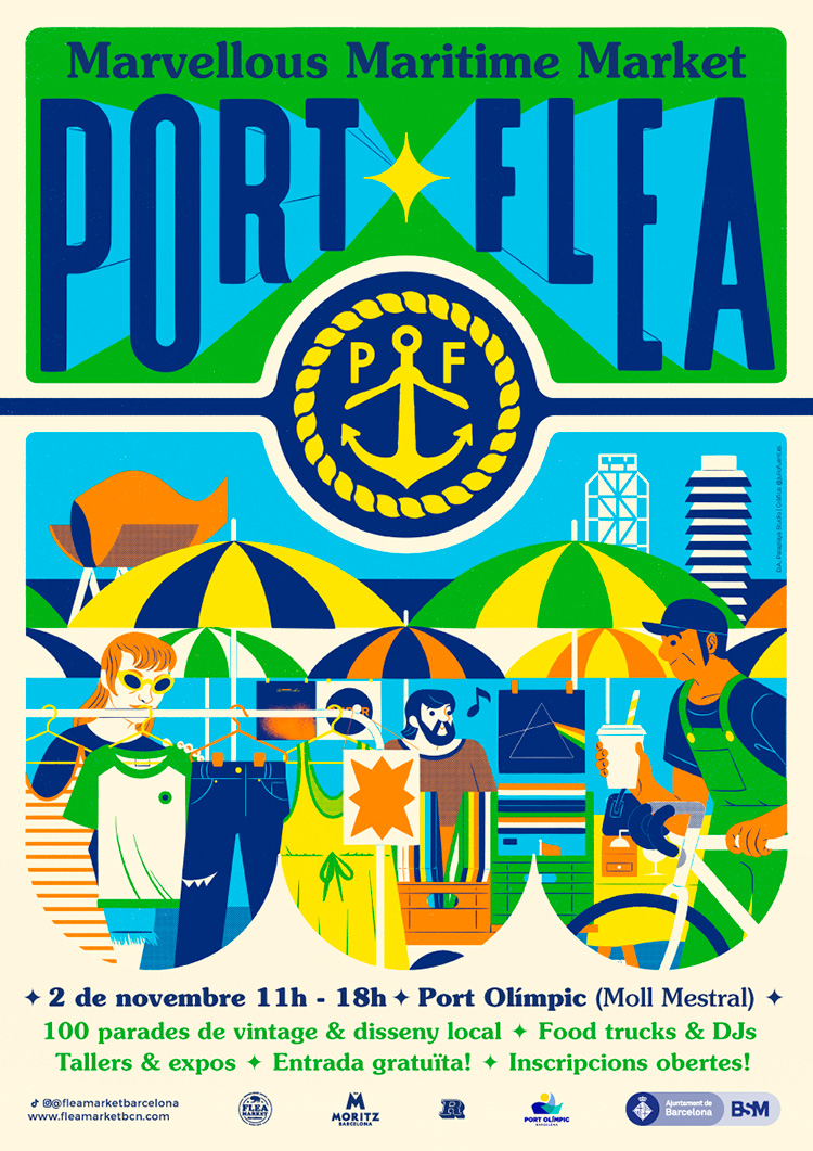 El Port Olímpic de Barcelona acollirà, el diumenge 2 de novembre de 2025, una nova edició del mercat de segona mà conegut com Flea Market Barcelona, que en aquesta ocasió adopta el nom de Port Flea. El mercat, que serà d’accés gratuït, tindrà lloc al Moll de Mestral d’11.00 a 18.00 hores i reunirà més de 80 expositors de productes vintage, disseny local i peces úniques.