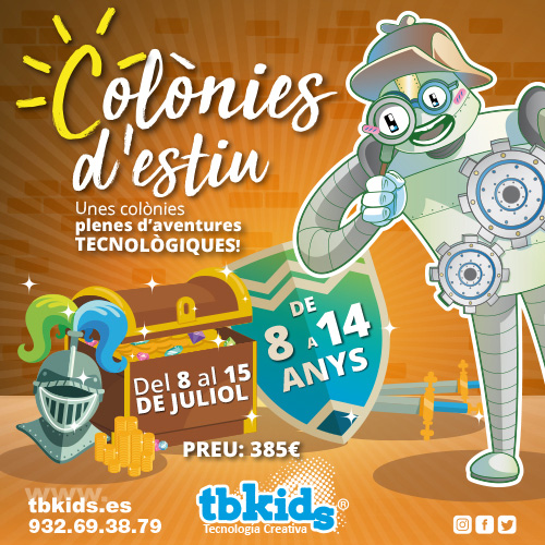 Llegir mésDetailsTbKids us ha preparat unes colònies d'estiu plenes d'aventures tecnològiques! Us endinsareu al món de les noves tecnologies mitjançant dinàmiques, tallers, gimcanes, així com activitats...